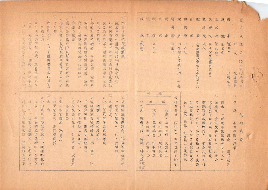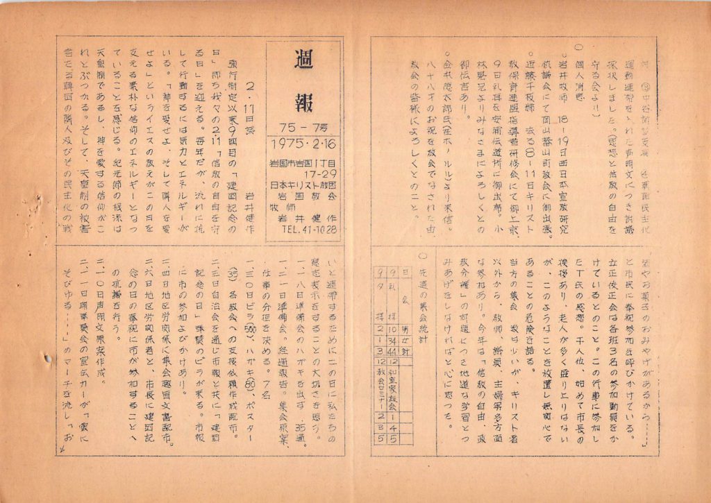1975年2月16日 岩国教会週報
