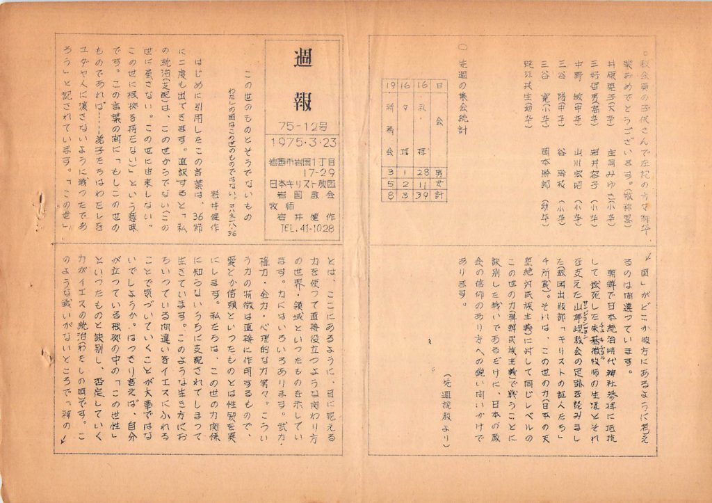 岩国教会週報「先週説教より」
