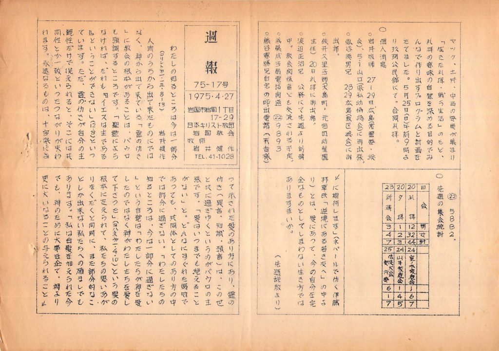 1975年4月27日 岩国教会週報「先週説教より」