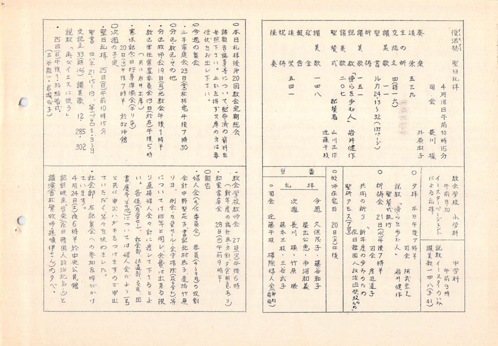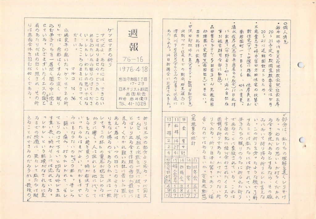 1976年4月18日 復活節(イースター)礼拝