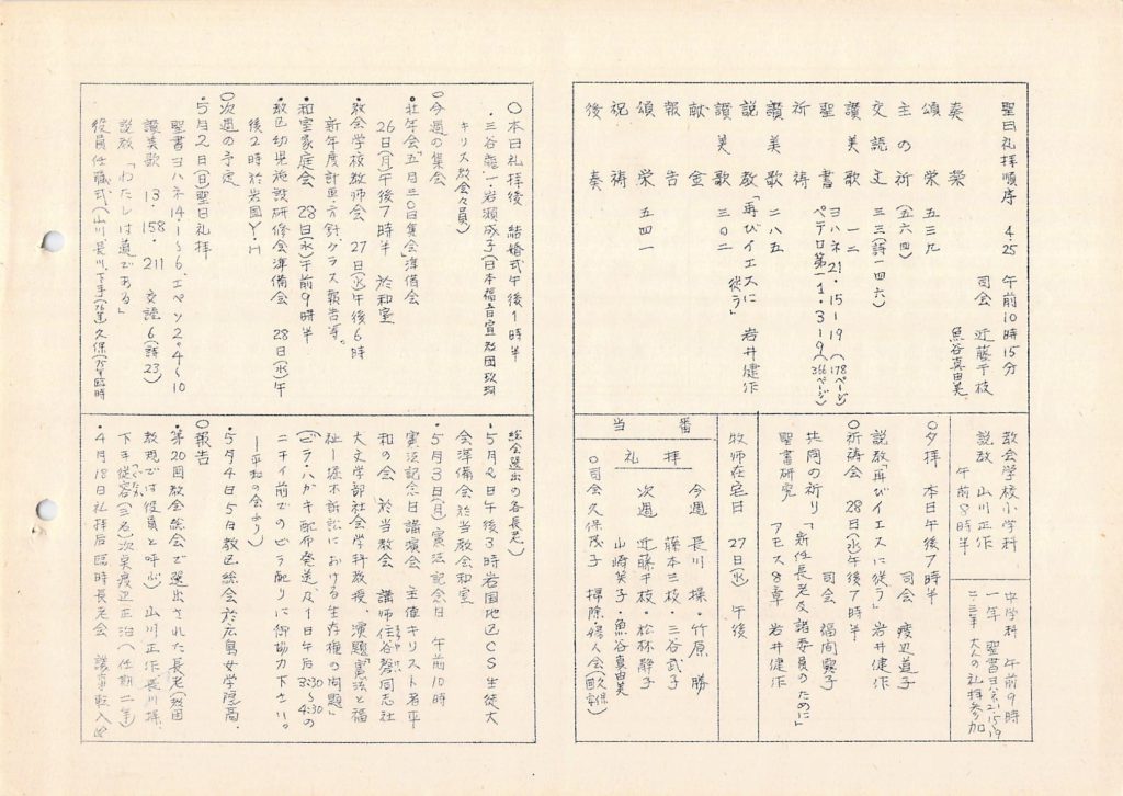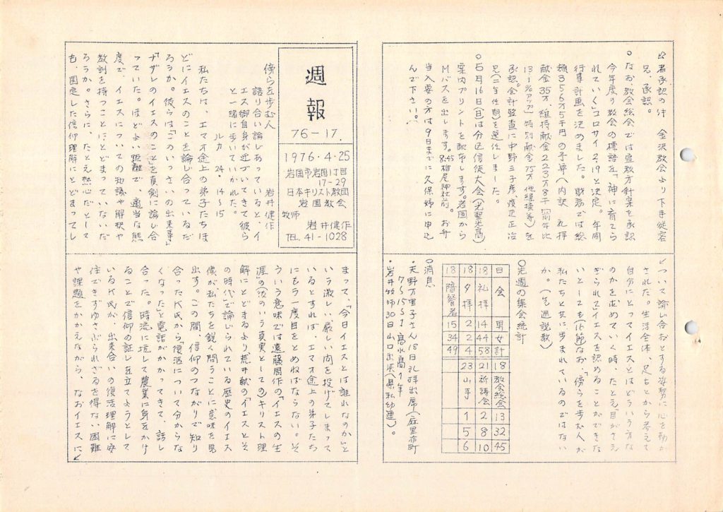 1976年4月25日 岩国教会週報、ルカ24:13-32