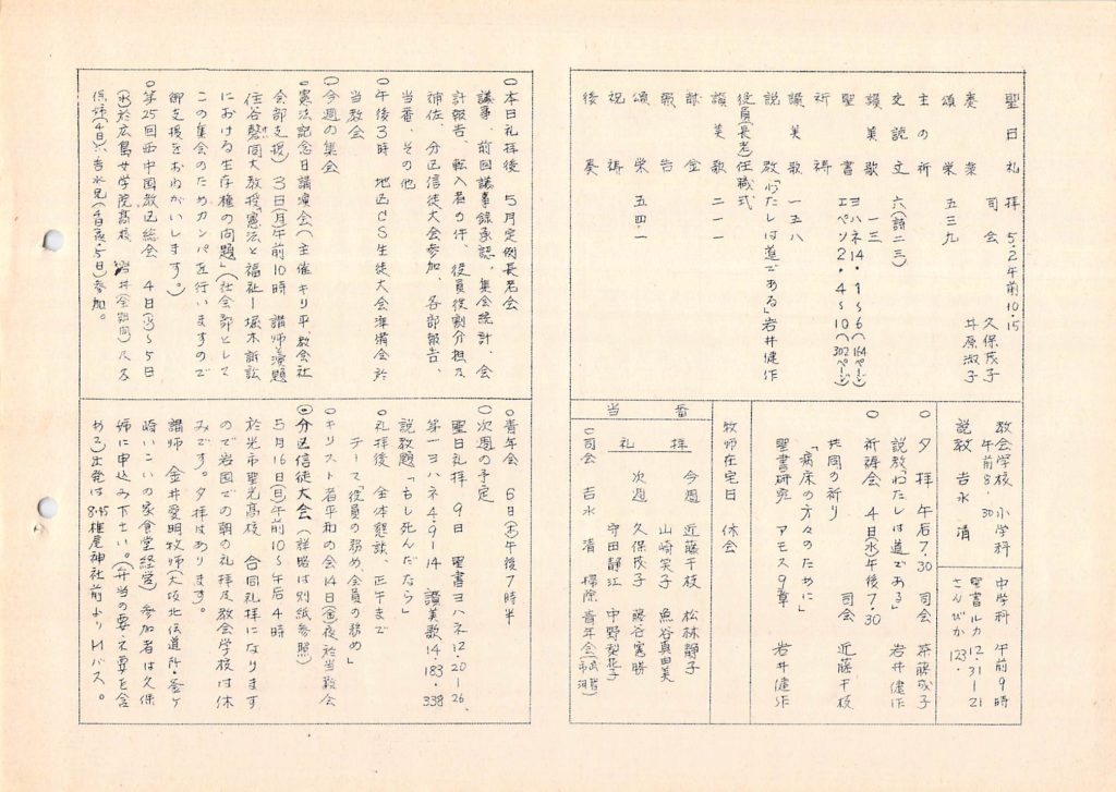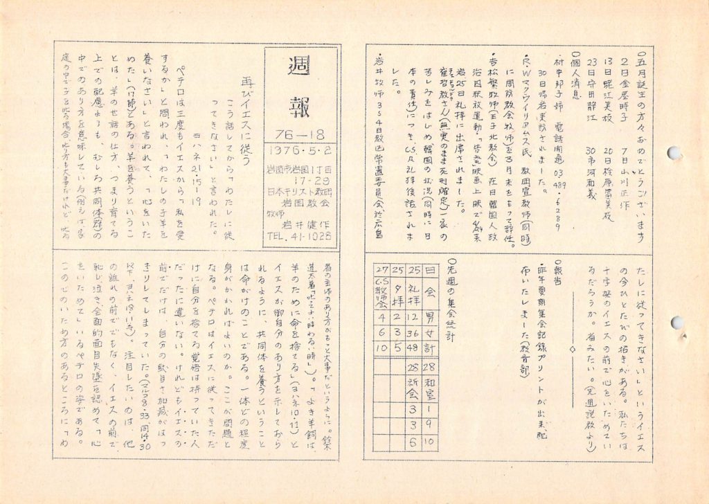 1976年5月2日 岩国教会週報「先週説教より」