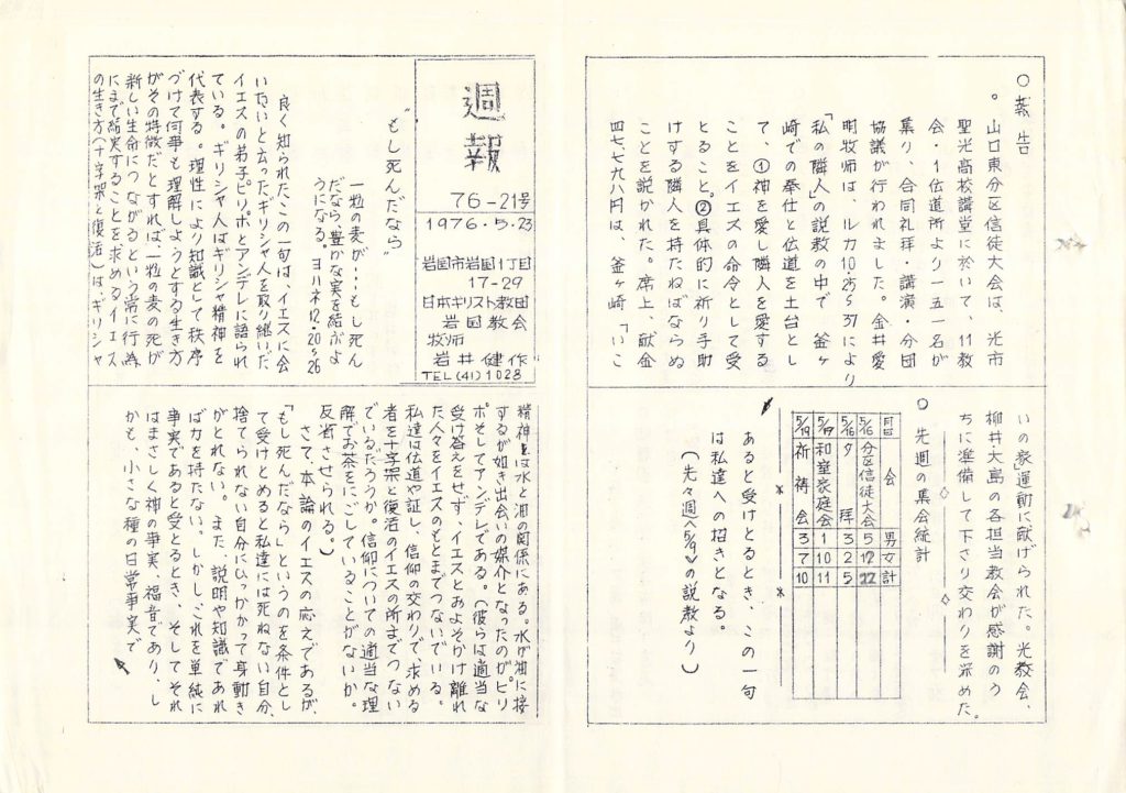 1976年5月23日 岩国教会週報「先々週の説教より」