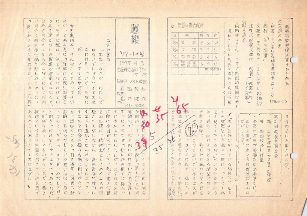 (1977年3月29日説教 岩井健作)