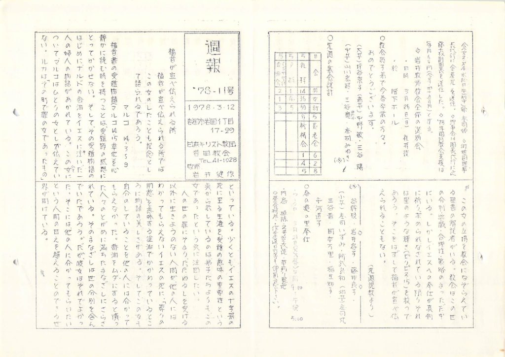 1978年3月12日 岩国教会週報「先週説教より」