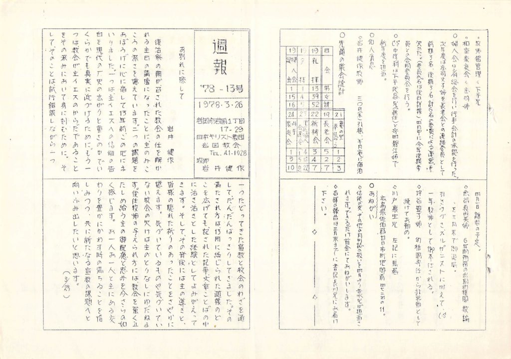 1978年3月26日 復活日(イースター礼拝)岩国教会週報