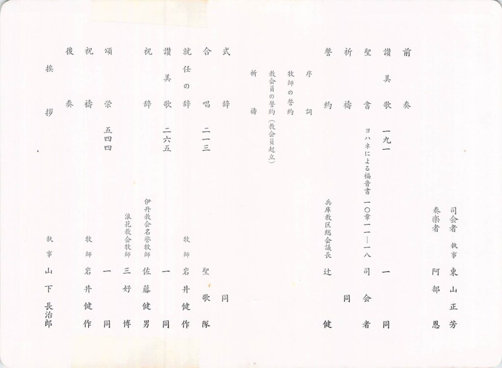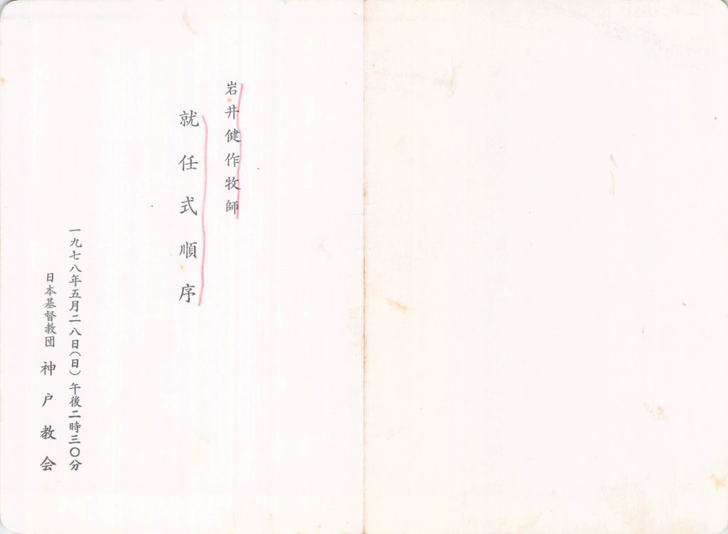 (牧会20年、神戸教会牧師就任式、健作さん44歳)