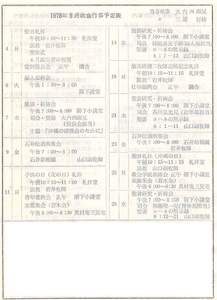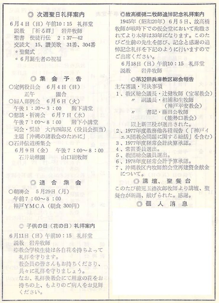 1978.5.28、神戸教会週報