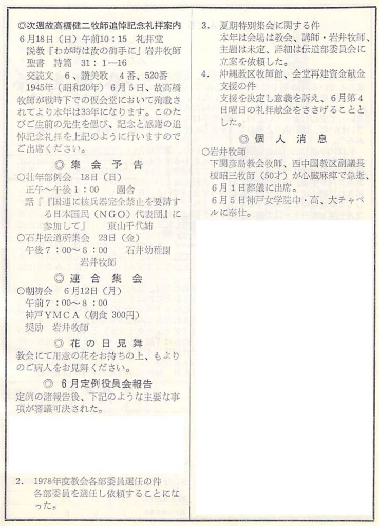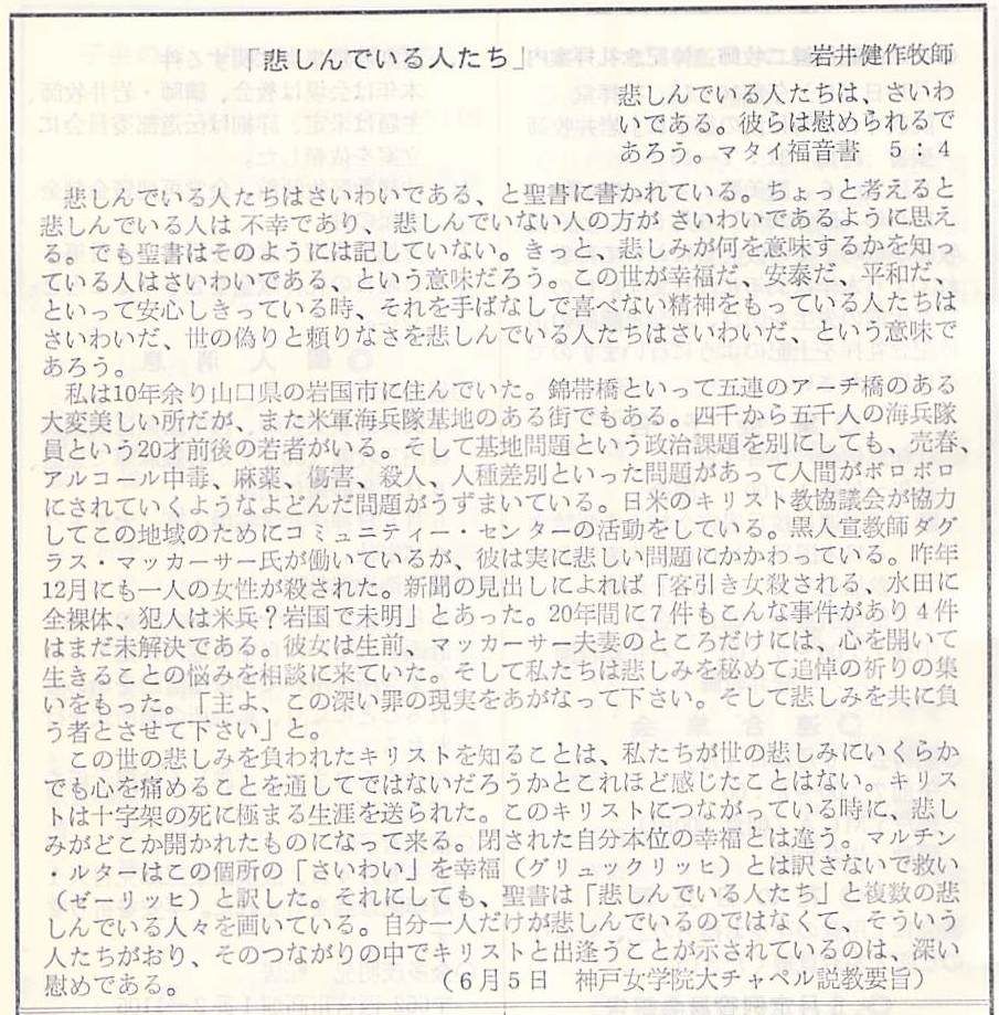 1978年6月5日(月)、神戸女学院中高生、於神戸女学院大学チャペル