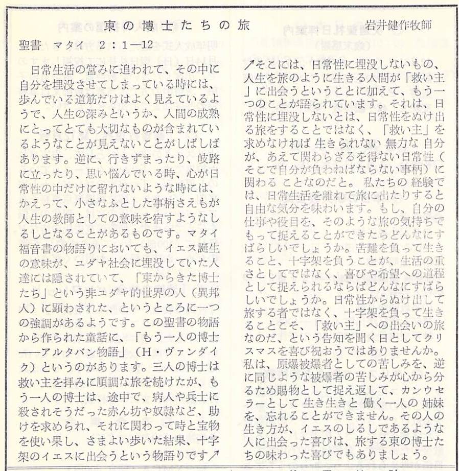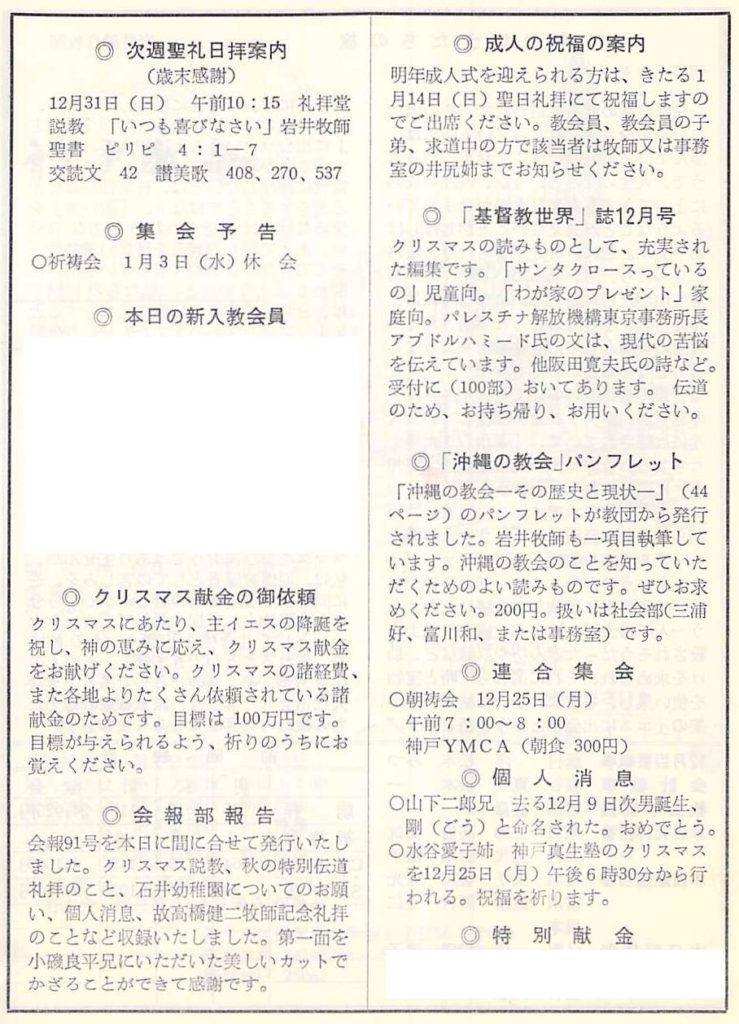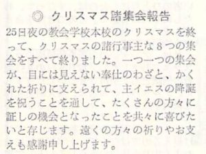 25日までにクリスマス諸集会が8つあったこと、翌週週報で次のように(健作さんから)奉仕に対する感謝の言葉が記録されている。