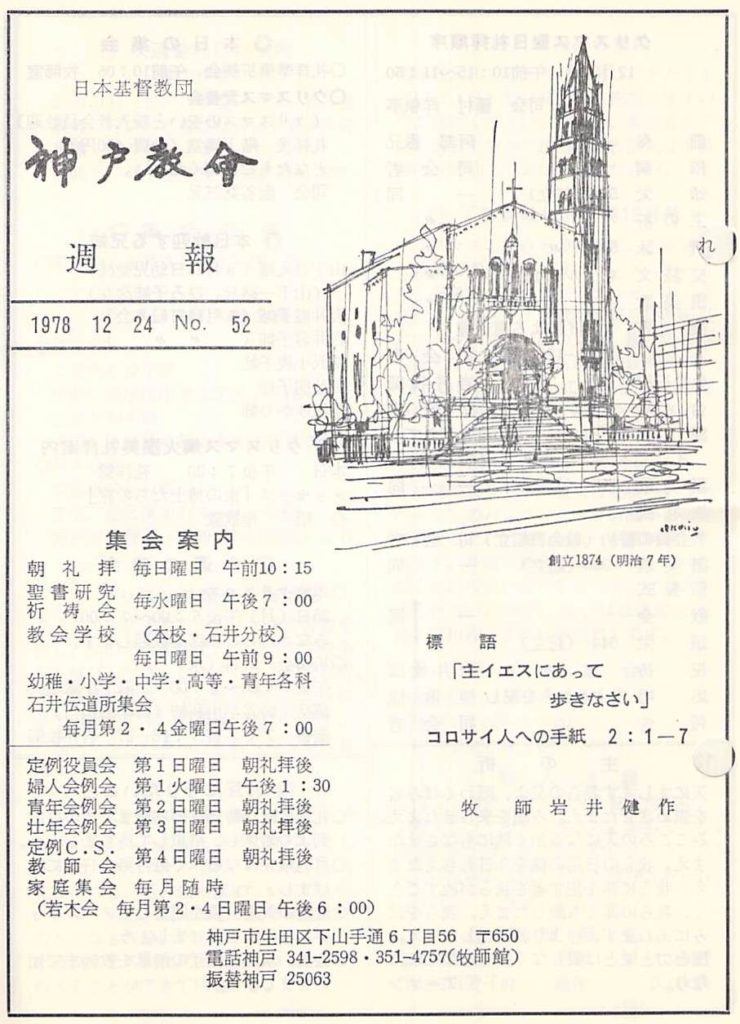 1978.12.24、午後7:30、クリスマス燭火讃美礼拝(神戸教会)