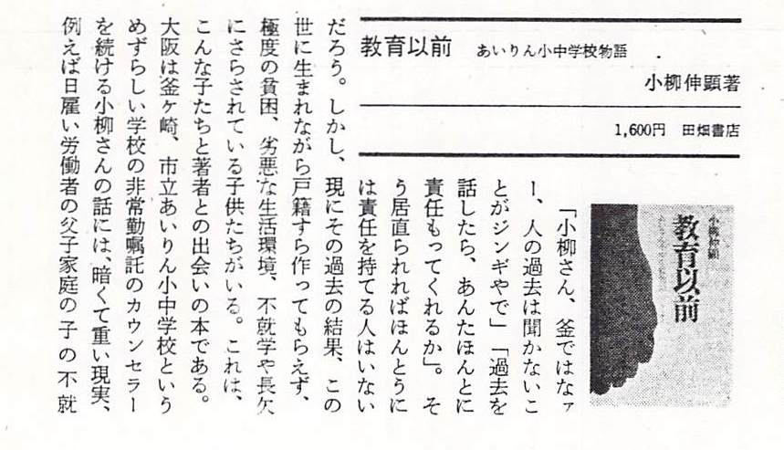 『教育以前 あいりん小中学校物語』小柳伸顕(のぶあき)著(田畑書店 1978)