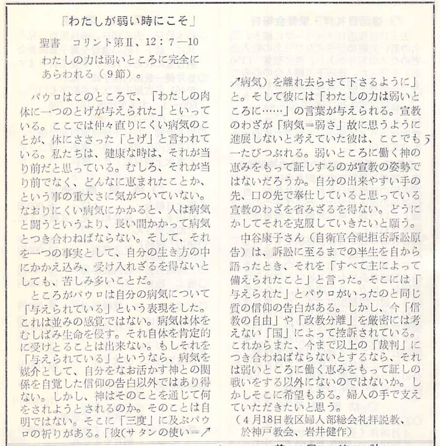 中谷康子さん(自衛隊合祀拒否訴訟原告)は、訴訟に至るまでの半生を自ら語った時、それを「すべて主によって備えられたこと」と言った。