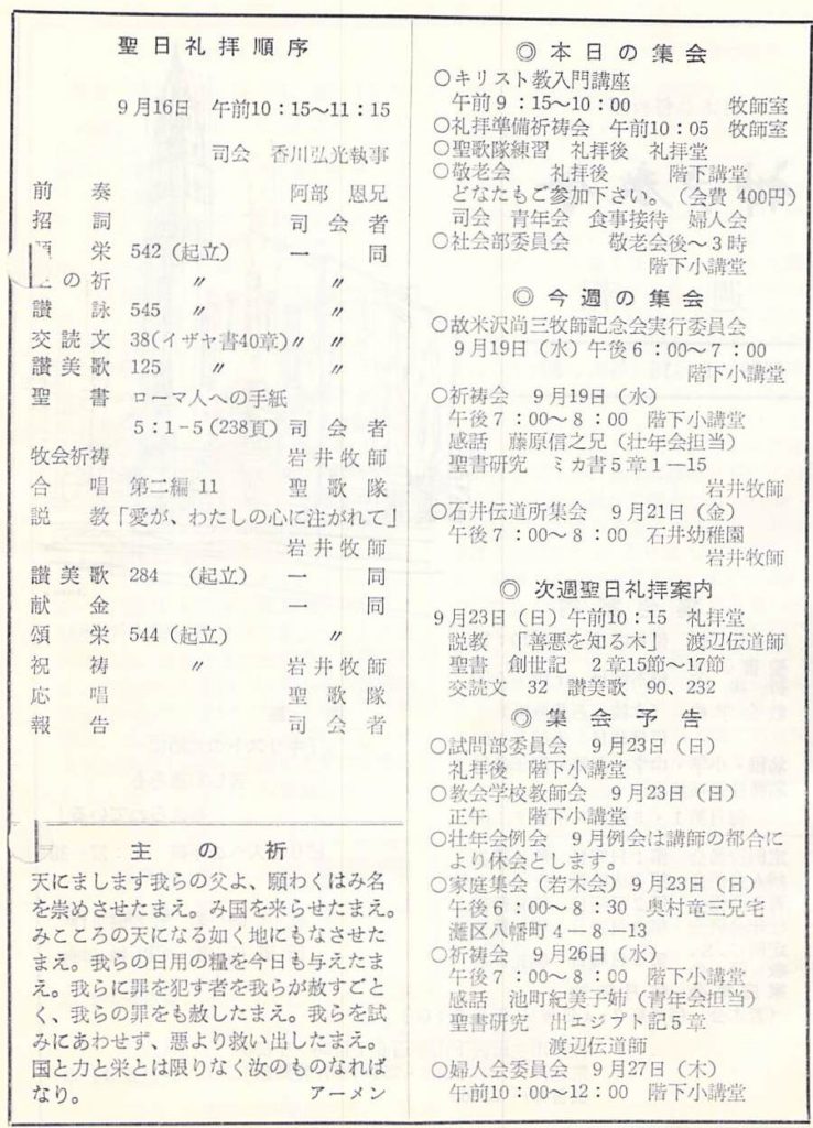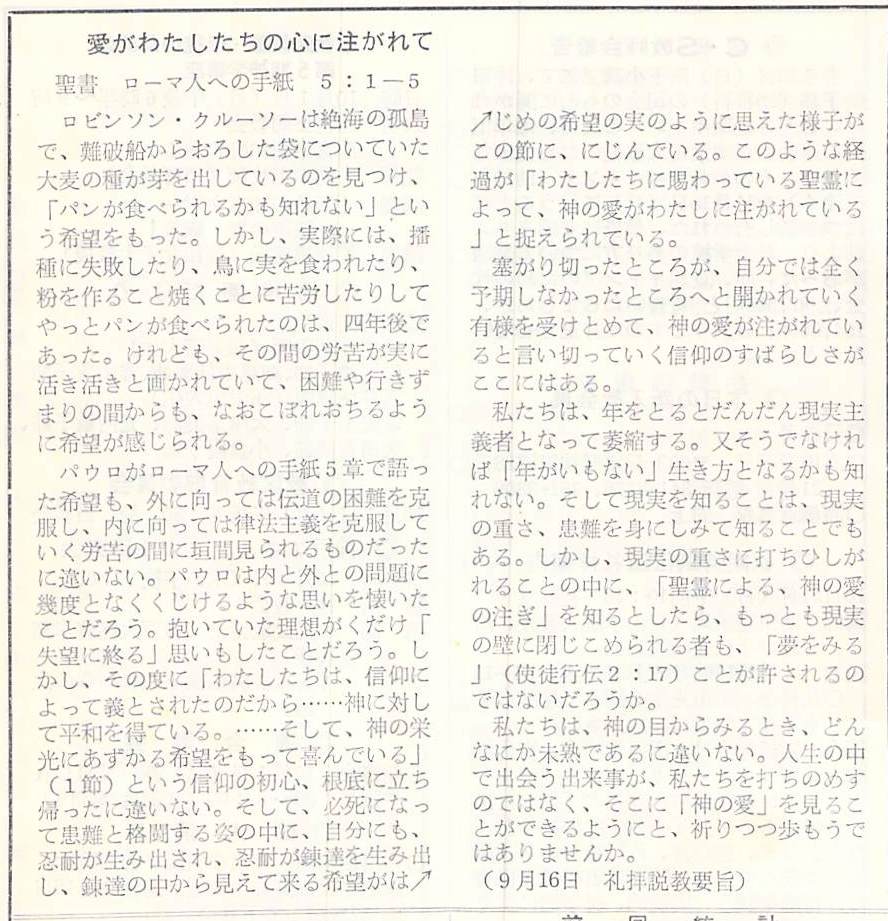 (1979年9月16日 礼拝説教要旨 岩井健作)