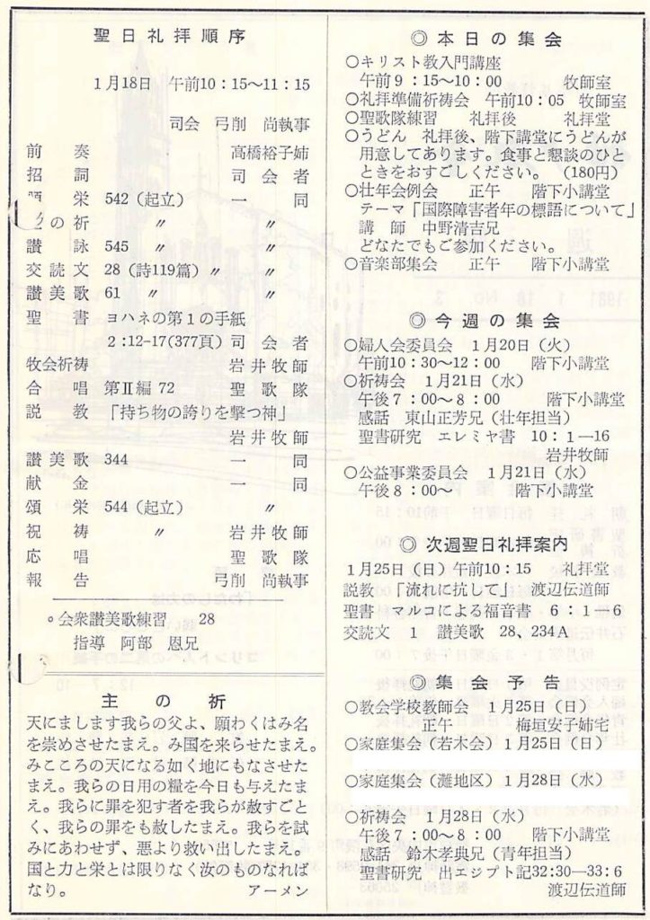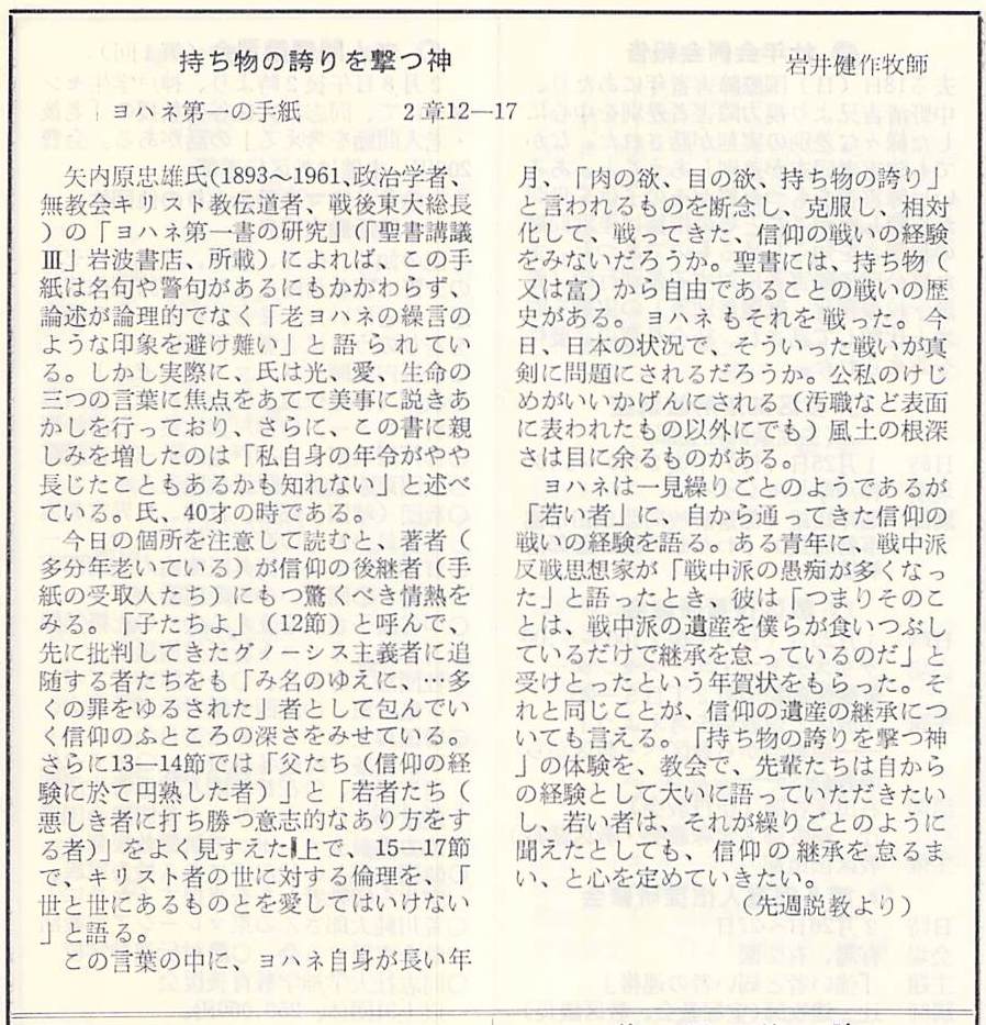 この日の説教、ヨハネ第一の手紙 2:12-17、「持ち物の誇りを撃つ神」岩井健作