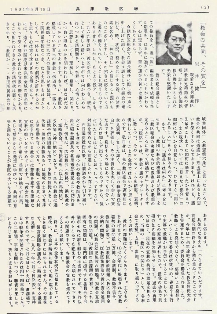 (1981年9月15日発行「兵庫教区報」岩井健作)