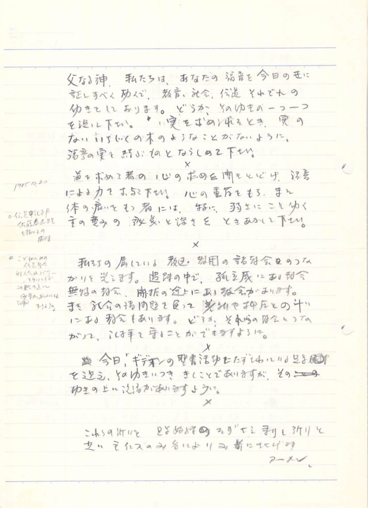 「牧会祈祷」原稿