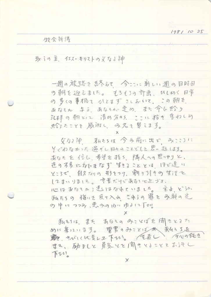 1981年10月25日 神戸教会礼拝