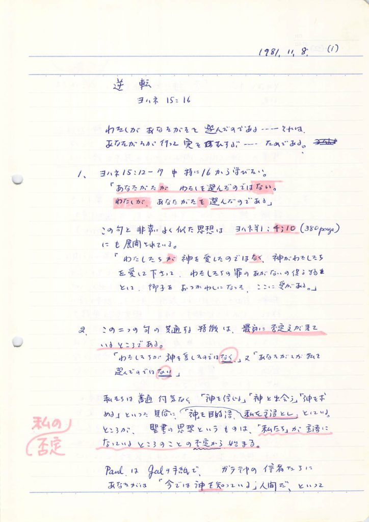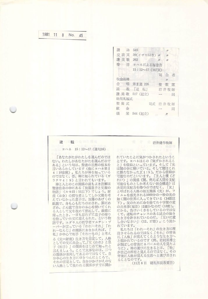 (1981年11月8日 神戸教会朝礼拝説教要旨 岩井健作)