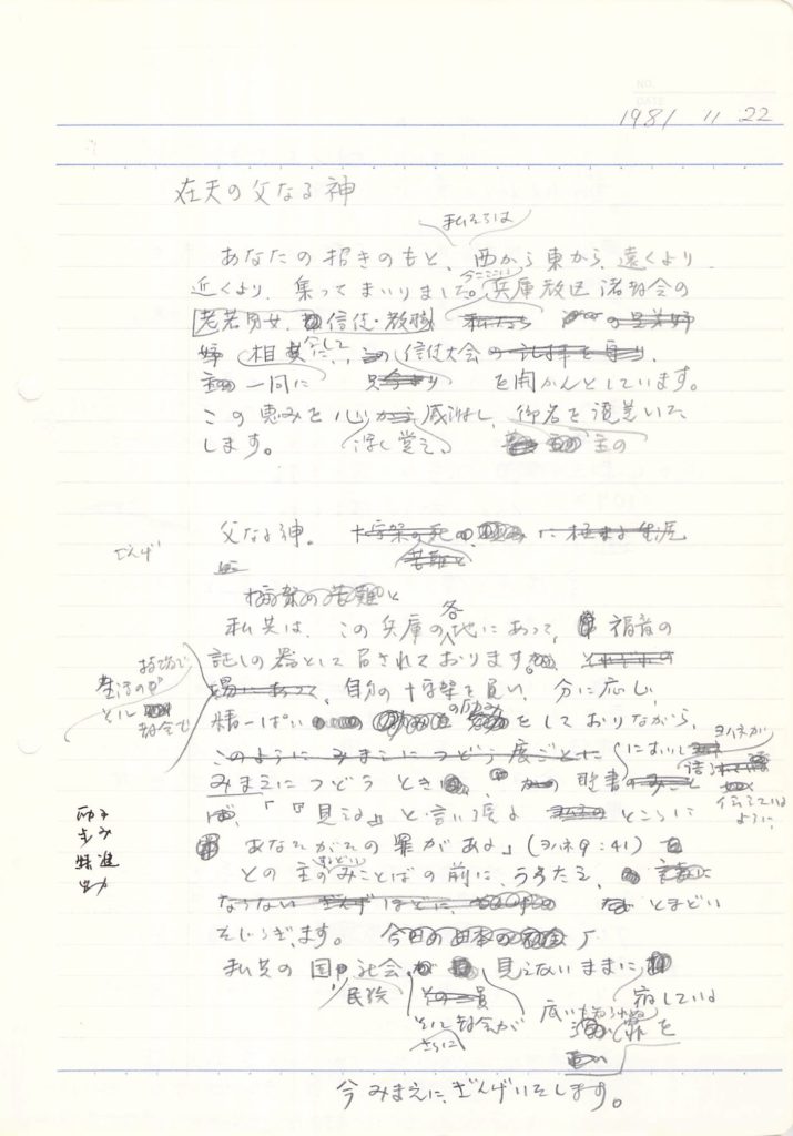 (1981年11月22日 兵庫教区信徒大会祈祷 岩井健作)