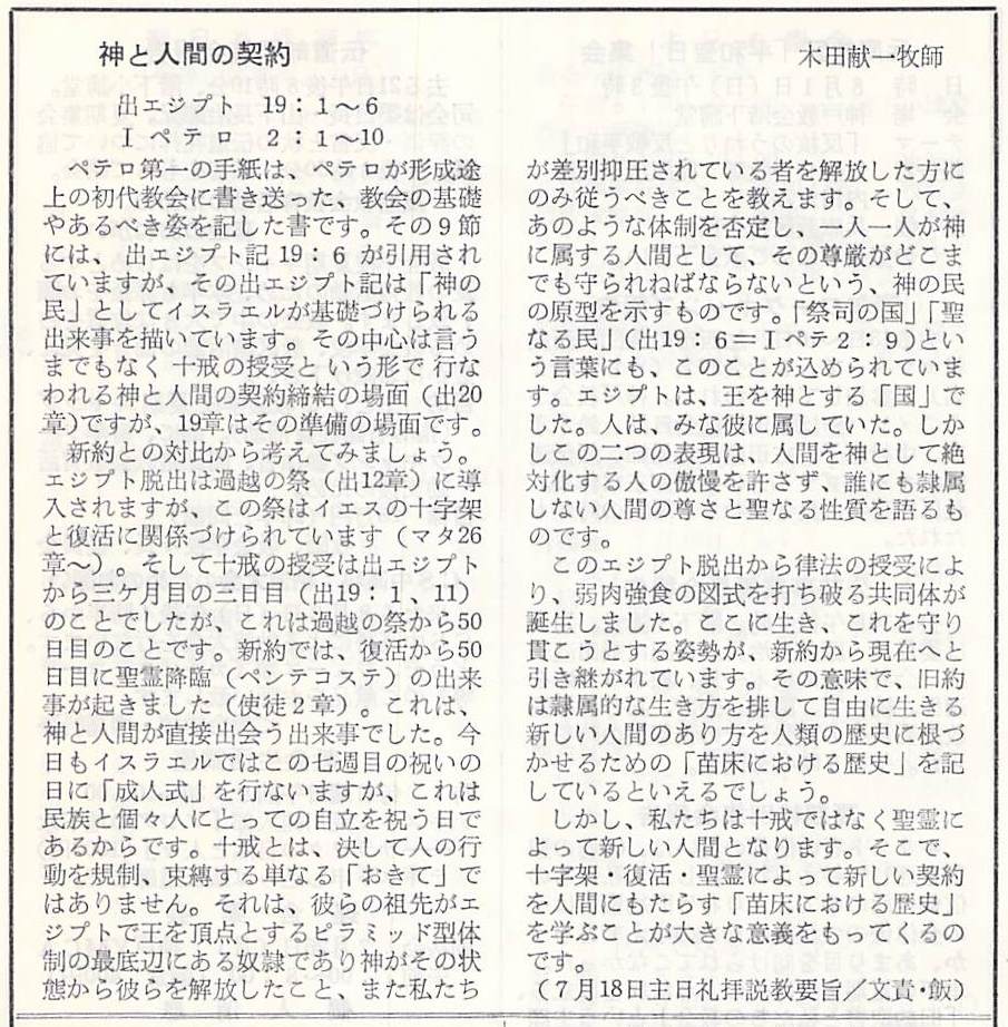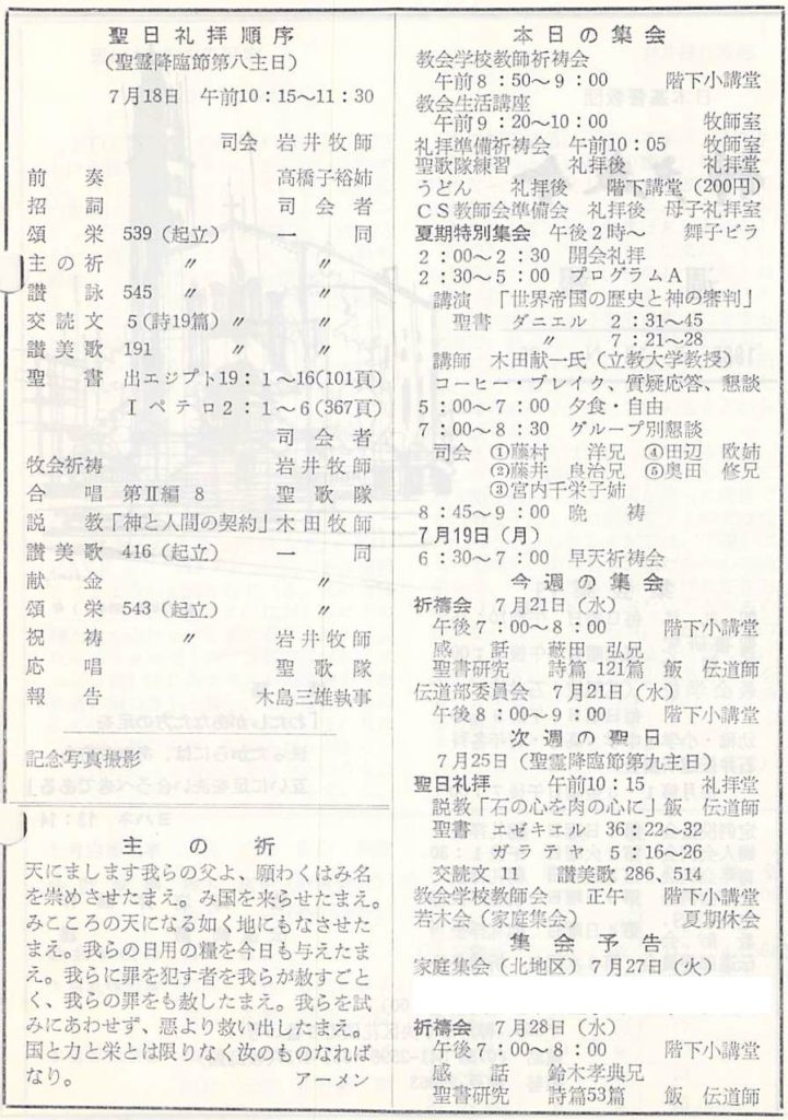 (1982年7月18日 木田献一氏説教/翌週週報掲載説教要旨 飯謙伝道師)
