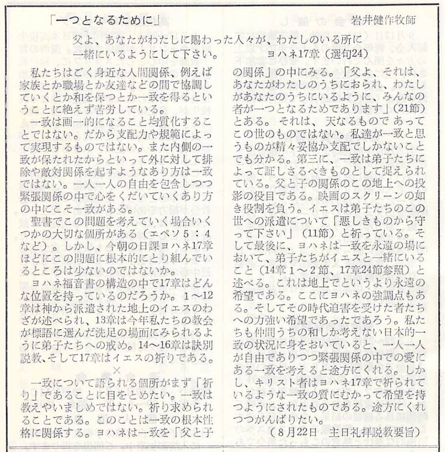 (1982年8月22日 神戸教会週報 岩井健作)