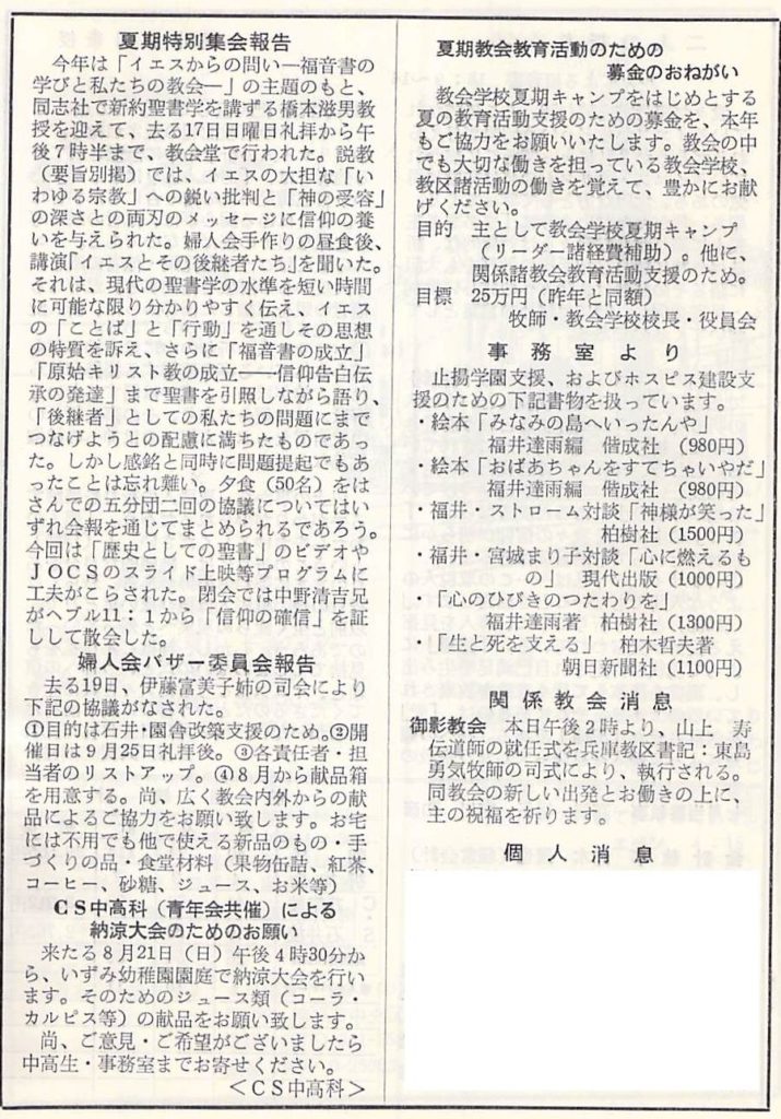 《1983年 夏期特別集会:橋本滋男氏》の翌週