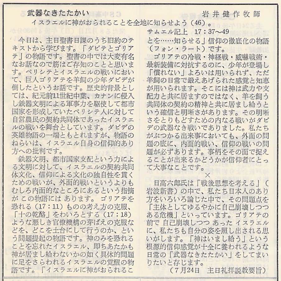 (1983年7月24日 説教要旨 岩井健作)