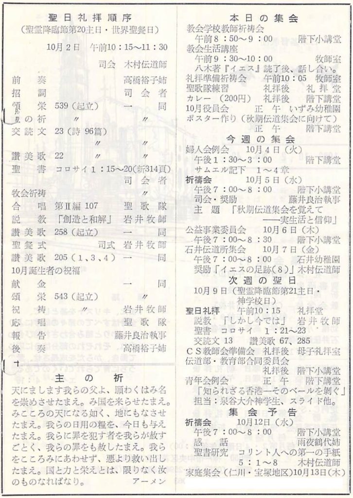 (1983年10月2日 説教要旨 岩井健作)