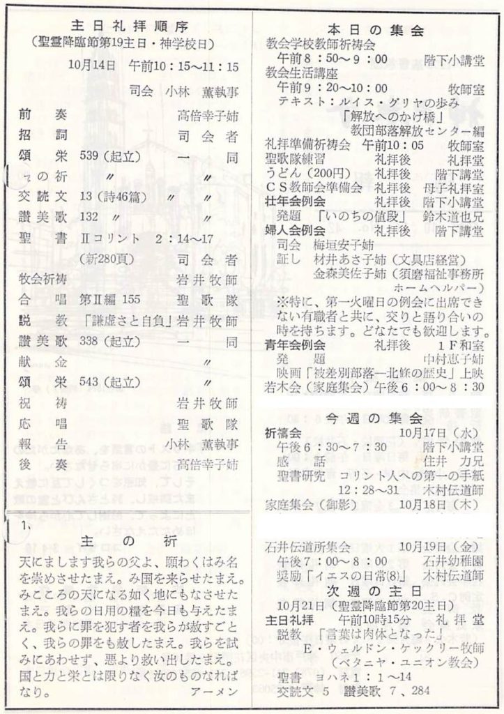 1984年10月14日、聖霊降臨節第19主日、神学校日、