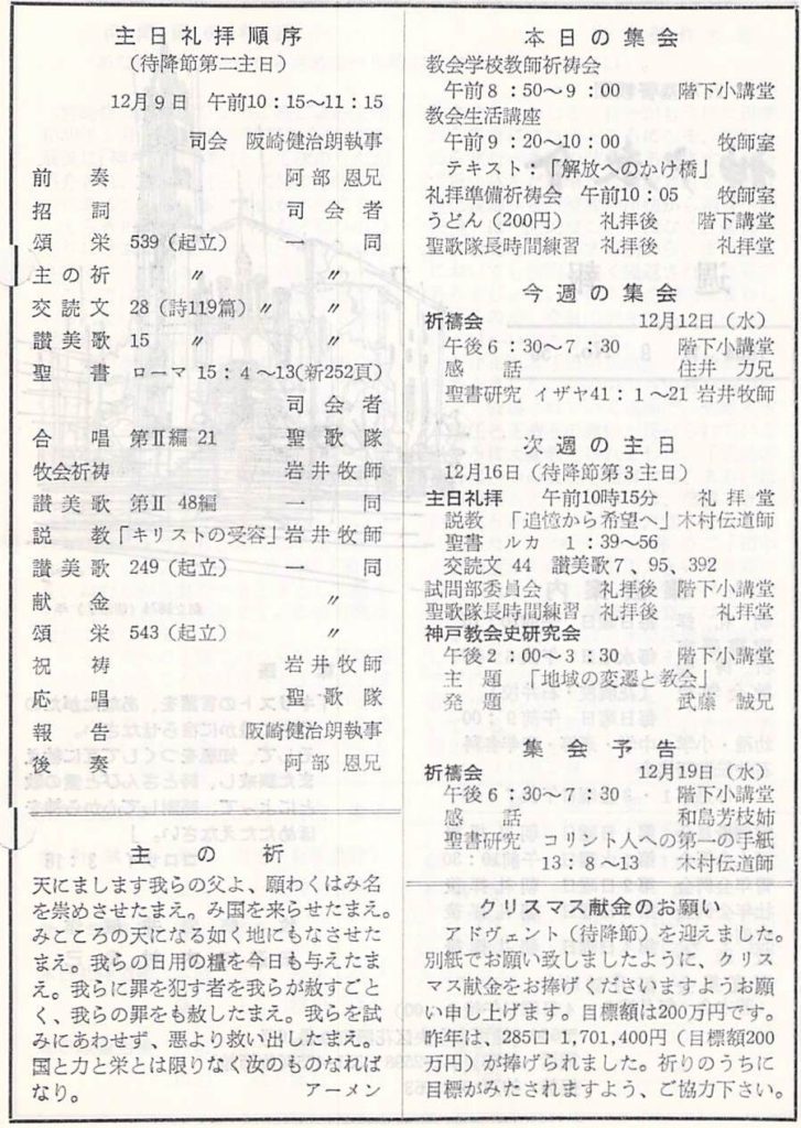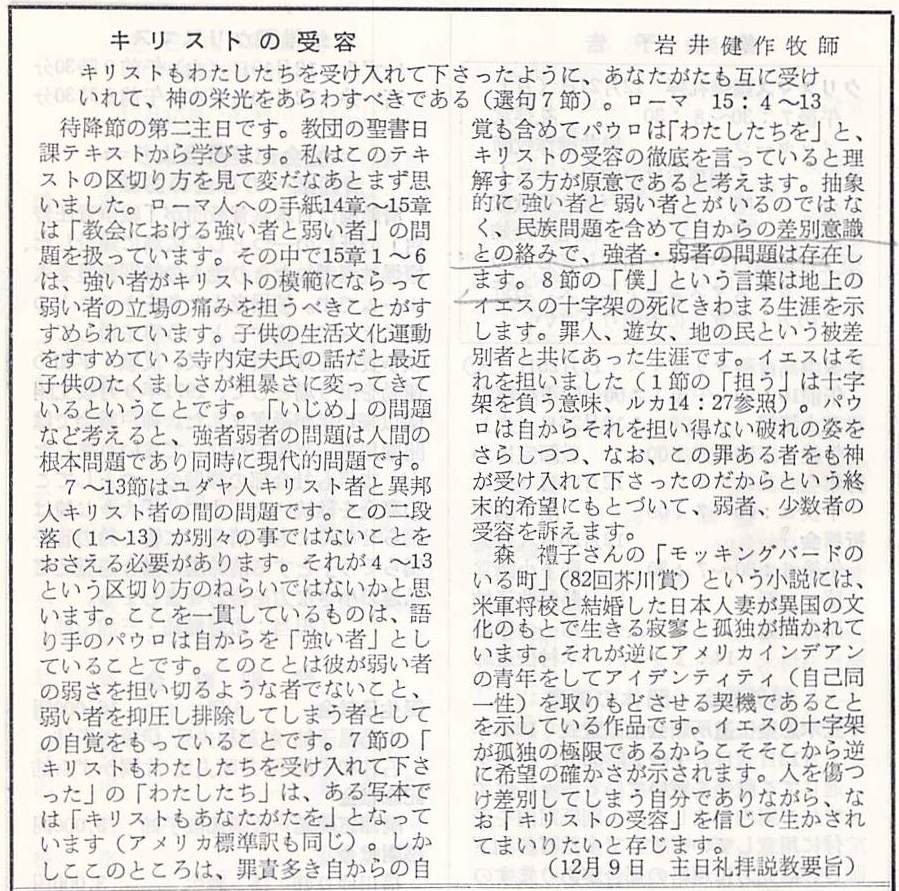 (1984年12月9日 説教要旨 岩井健作)