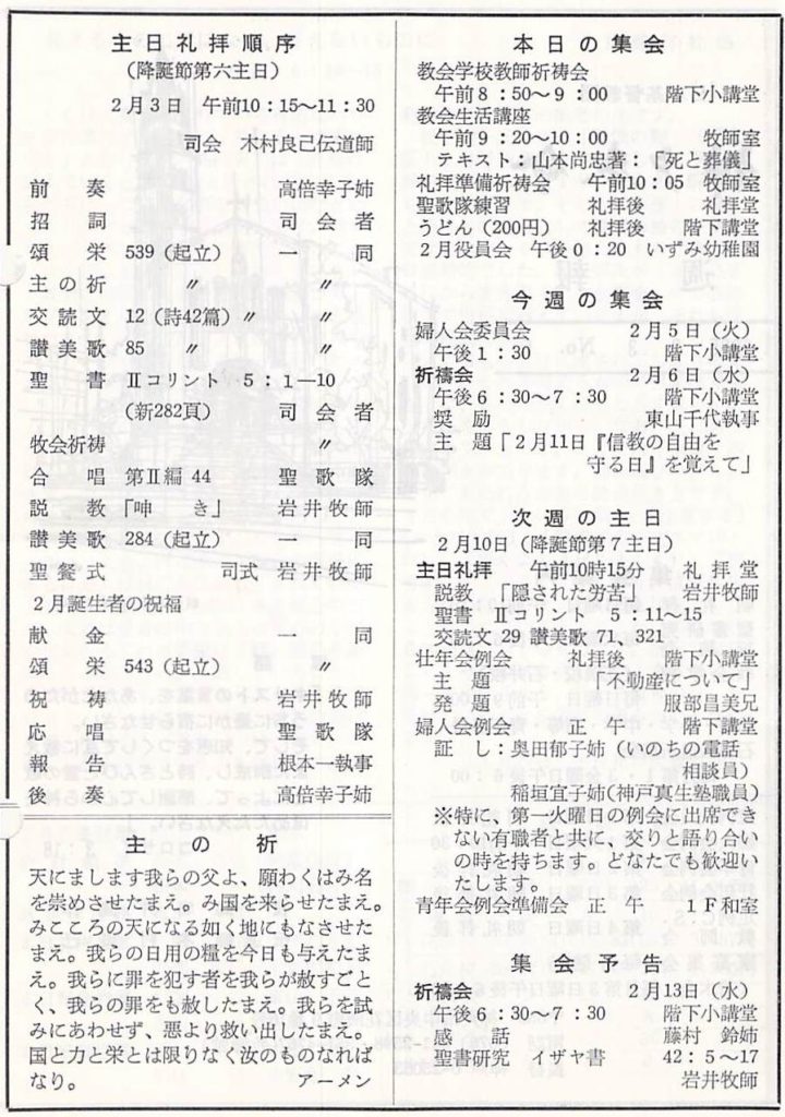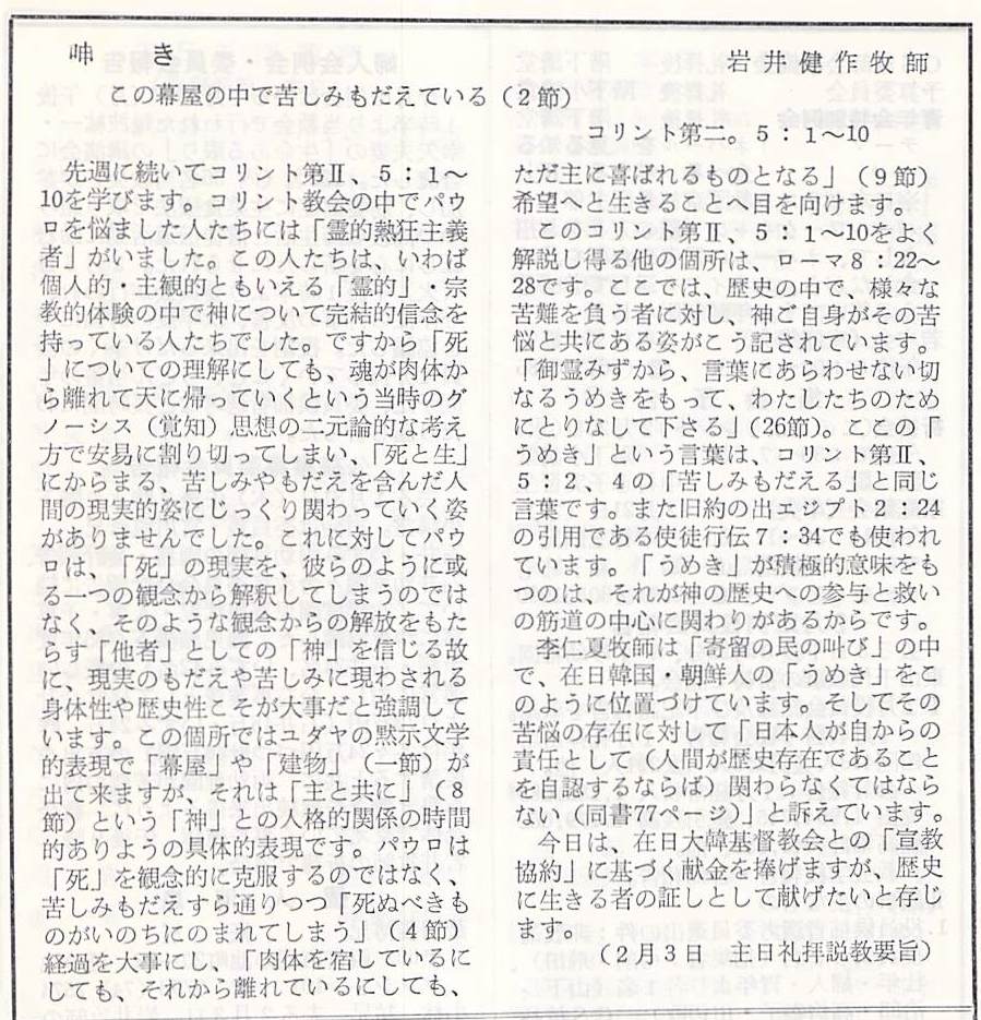 (1985年2月3日 神戸教会週報 岩井健作)