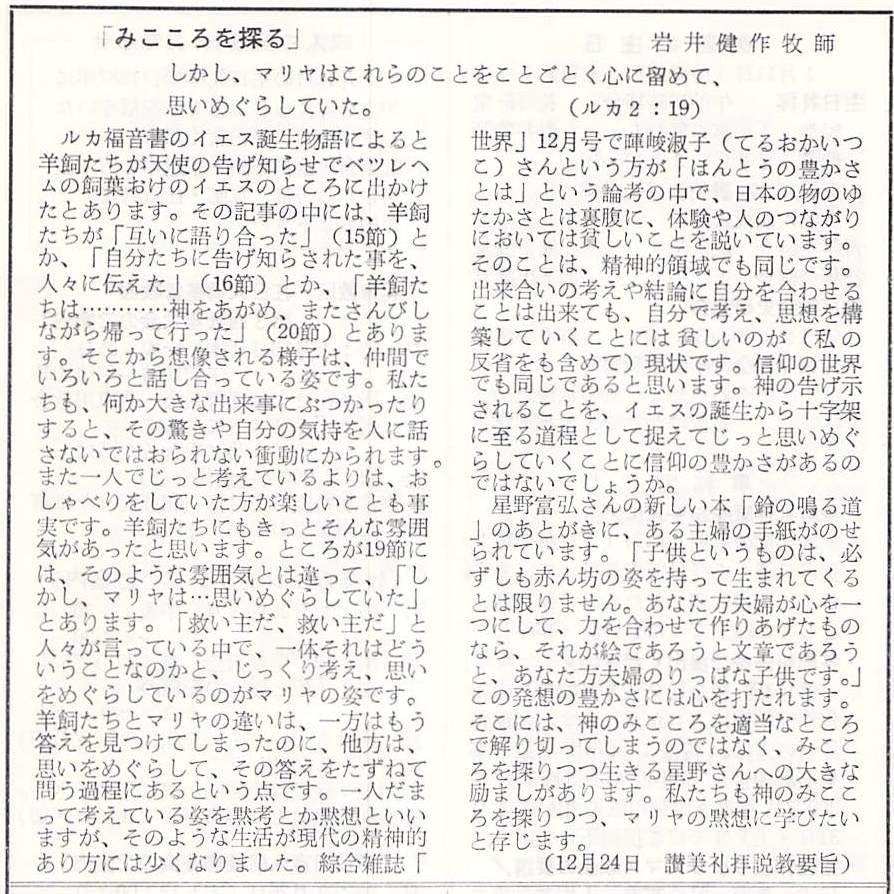 (1986年12月24日 神戸教会 岩井健作)
