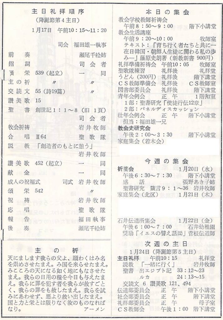 1988年1月17日、降誕節第4主日