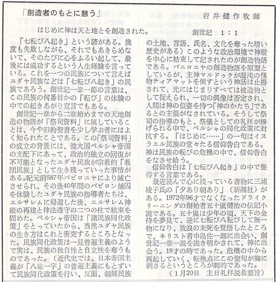 (1988年1月17日 説教要旨 岩井健作)