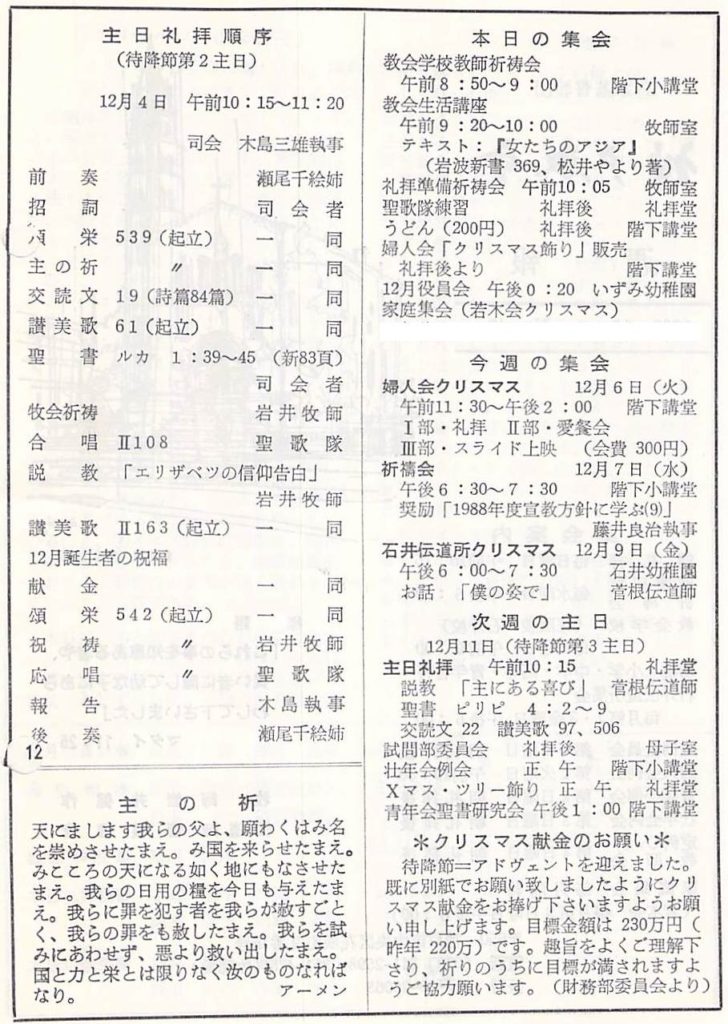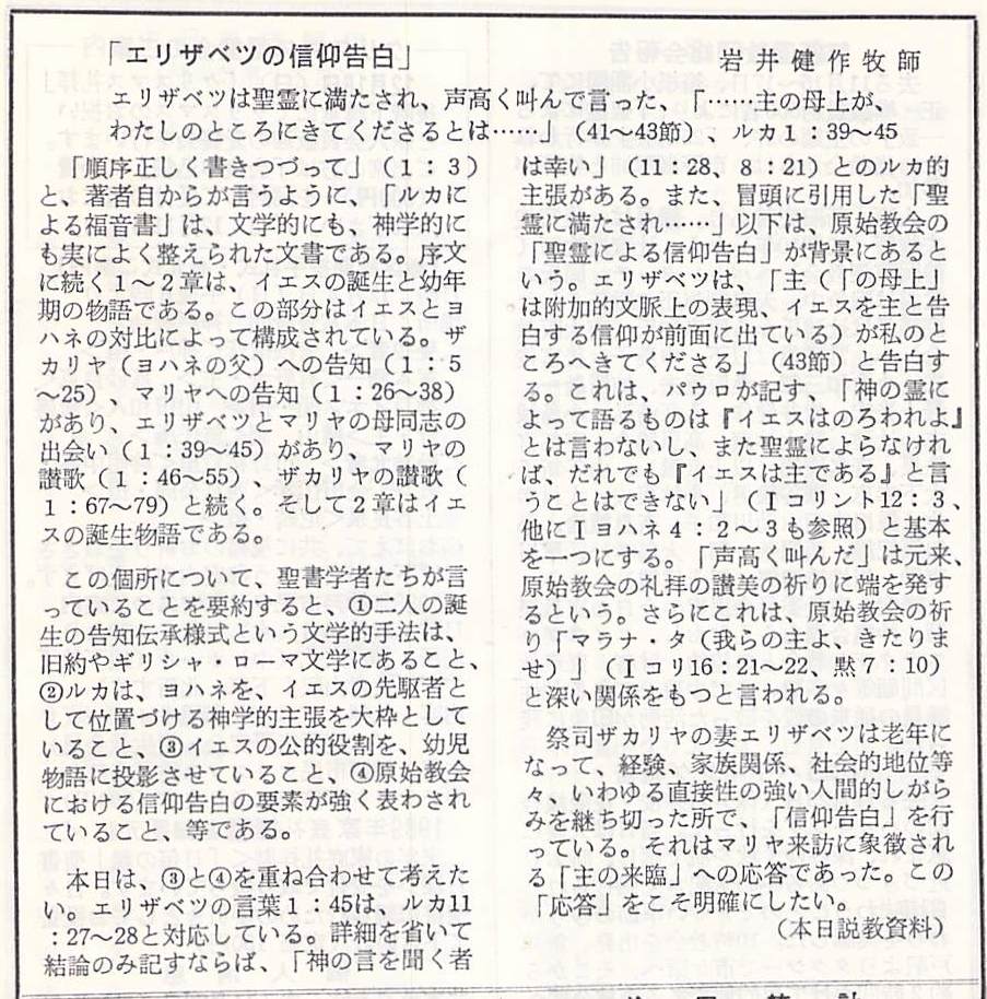 (1988年12月4日 本日説教資料 岩井健作)