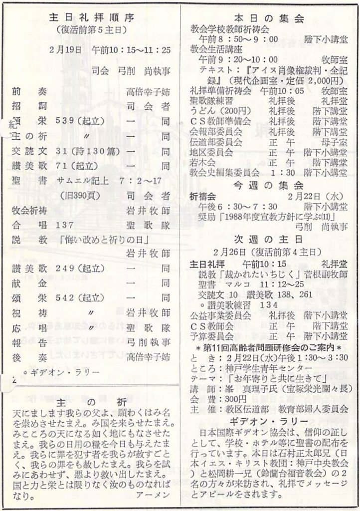 (1989年2月19日 説教要旨 岩井健作)