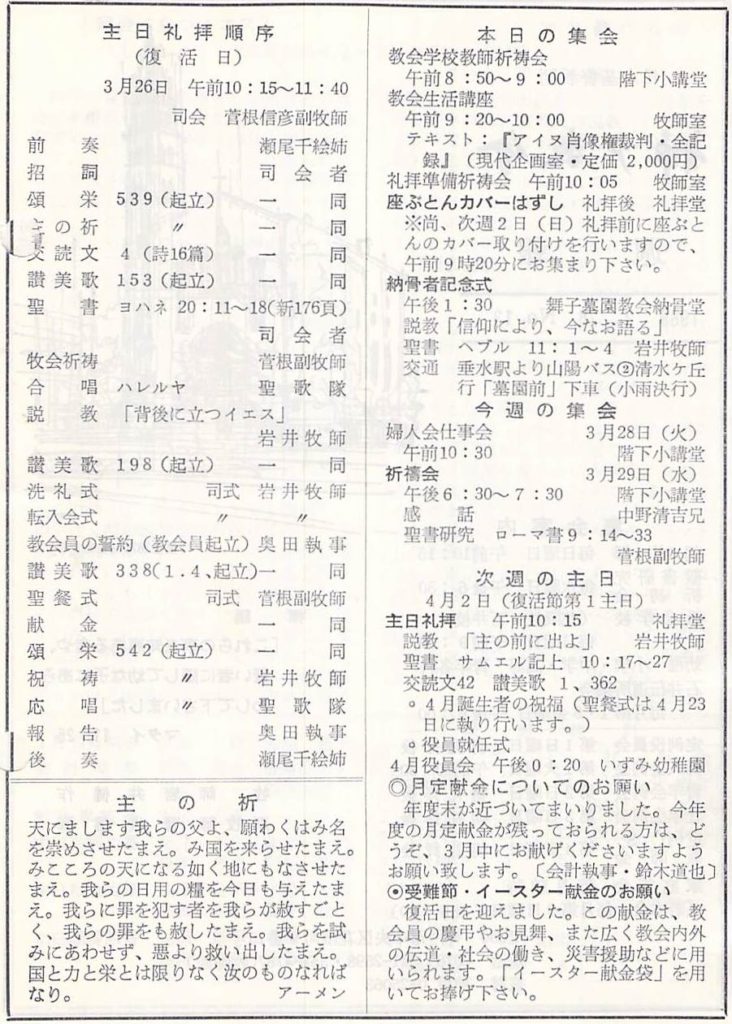 (1989年3月26日 説教要旨 岩井健作)