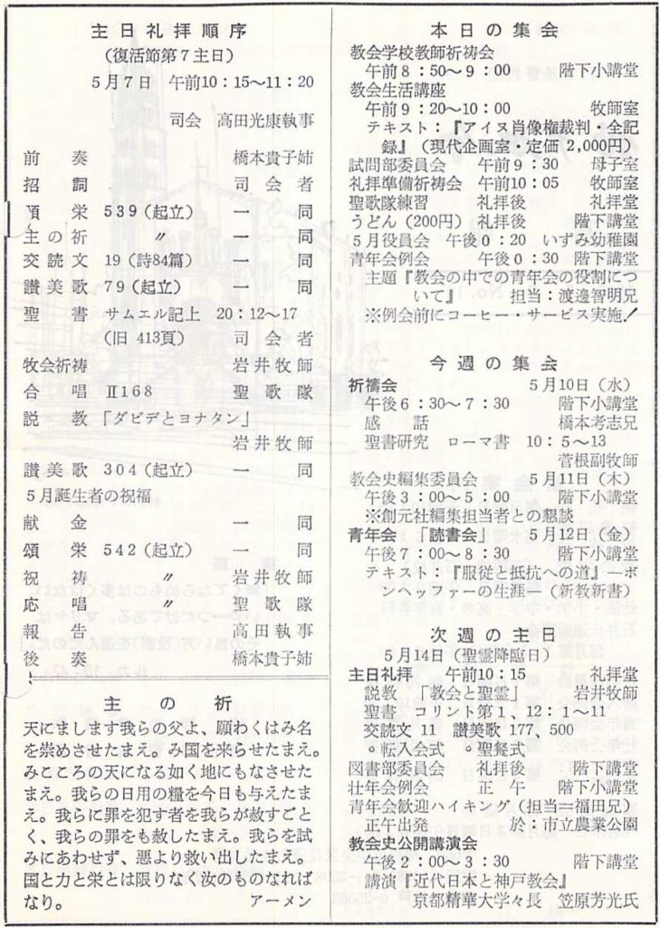 (当日の神戸教会週報に掲載)
