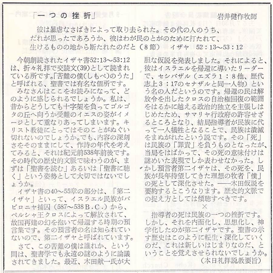 イザヤ書 52:13-53:12、説教題「一つの挫折」岩井健作