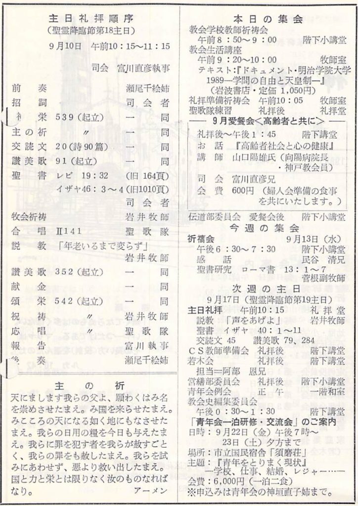 (1989年9月10日 説教要旨 岩井健作)