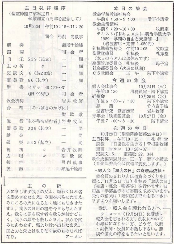 (1989年10月22日 説教要旨 岩井健作)