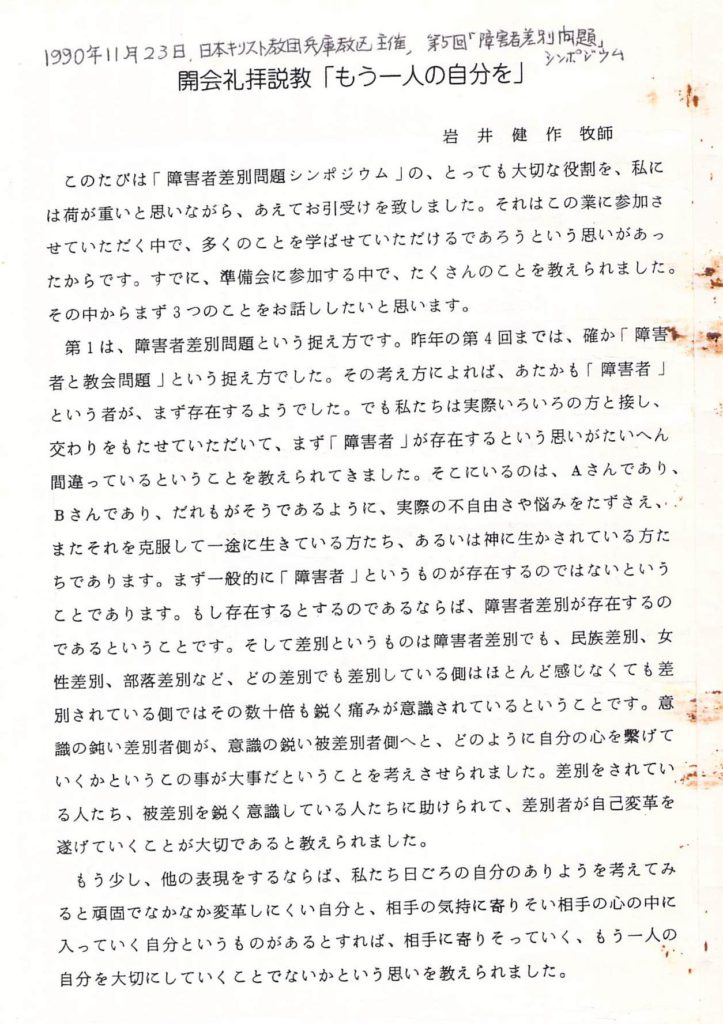 第5回「障害者差別問題」シンポジウム 開会礼拝説教