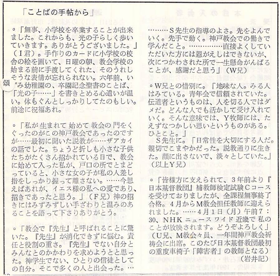 (1991年3月31日 神戸教会週報 岩井健作)