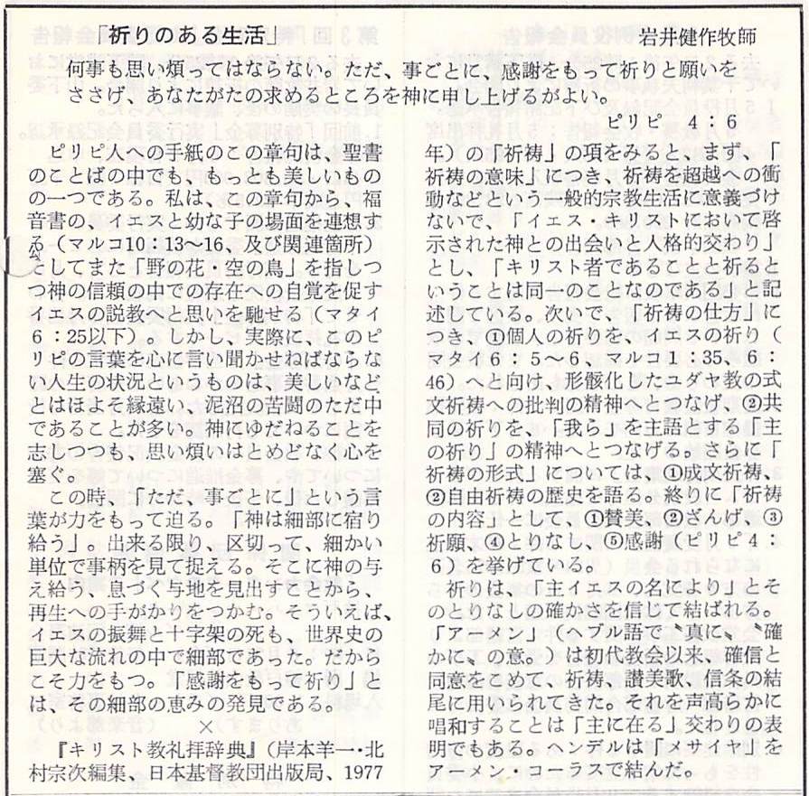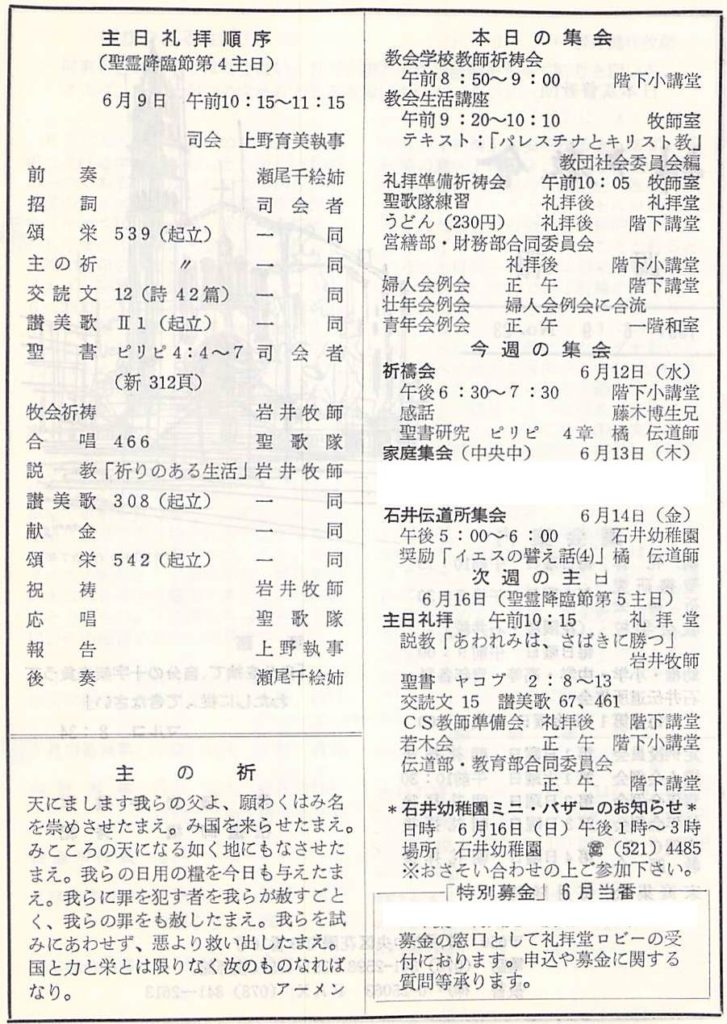 1991年6月9日、神戸教会週報、聖霊降臨節第4主日礼拝