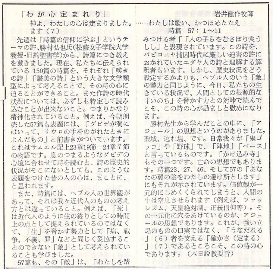 (1991年7月21日 神戸教会週報 岩井健作)