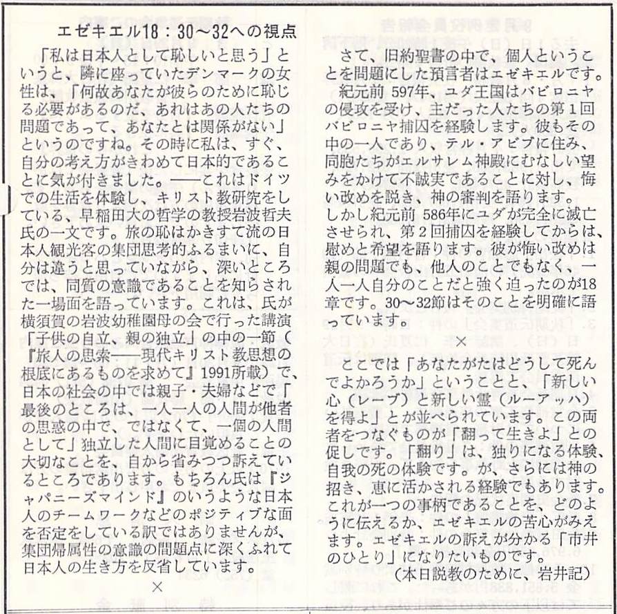 (1991年9月8日 神戸教会週報 岩井健作)