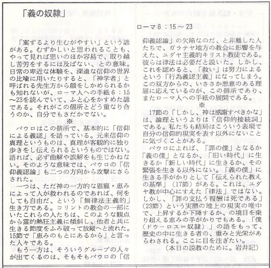 (1992年5月10日 週報掲載 岩井健作)