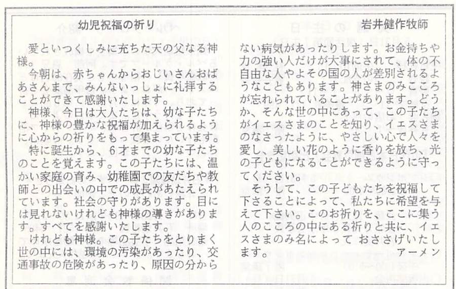 神様、今日は大人たちは、幼な子たちに、神様の豊かな祝福が加えられるように心からの祈りをもって集まっています。