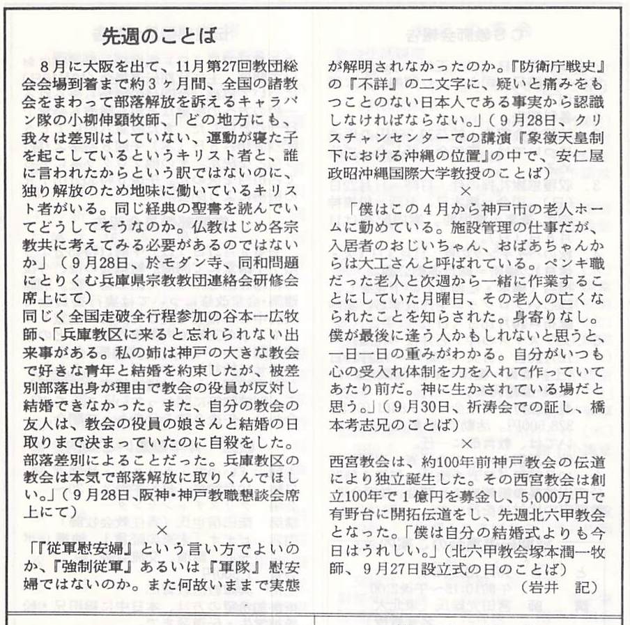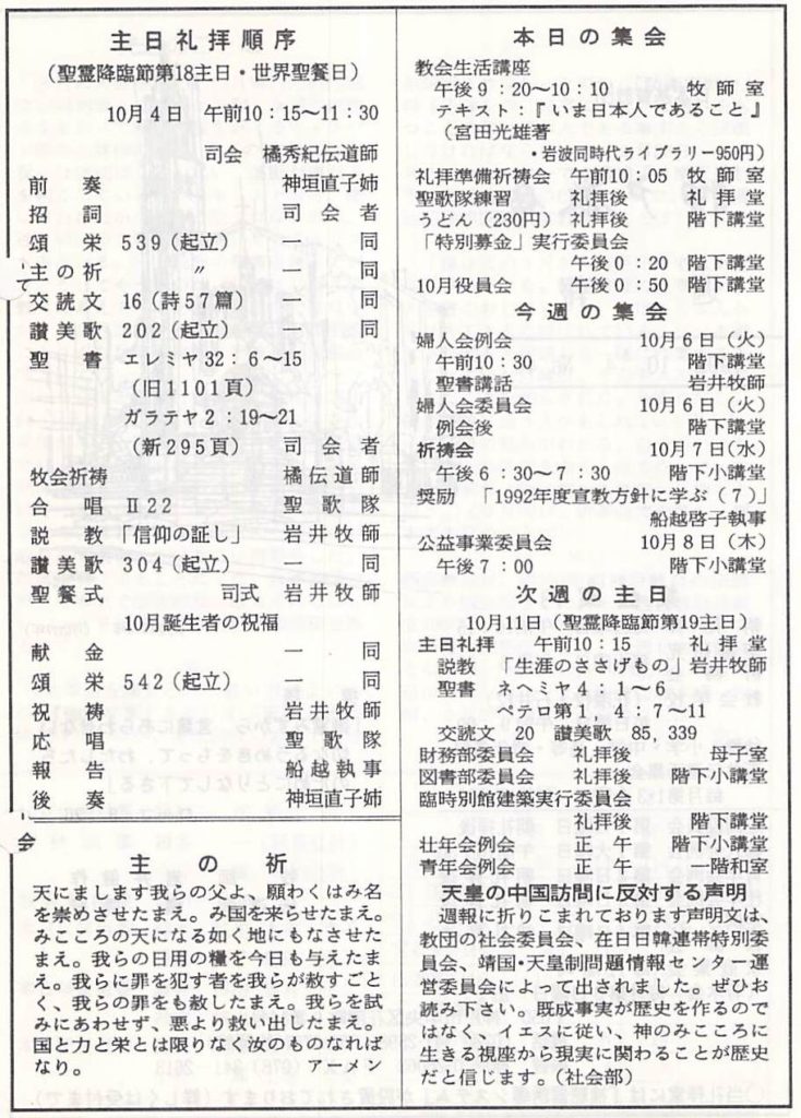 1992.10.4、神戸教会 週報